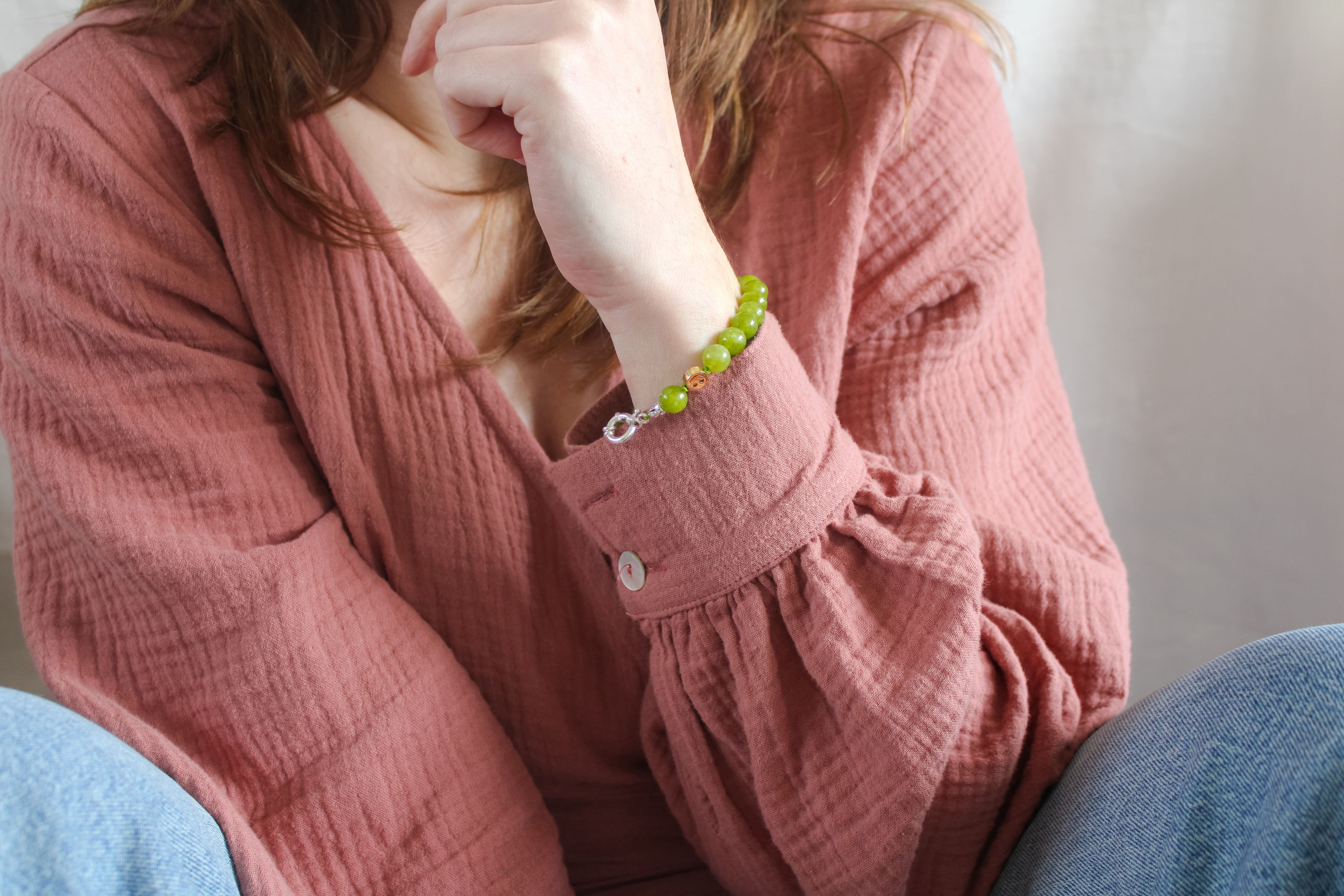 Elke edelsteen heeft zijn eigen uitstraling en betekenis. Deze armband staat voor groei, vernieuwing, welzijn en bescherming. Geen twee armbanden zijn hetzelfde; jouw sieraad is echt uniek.
