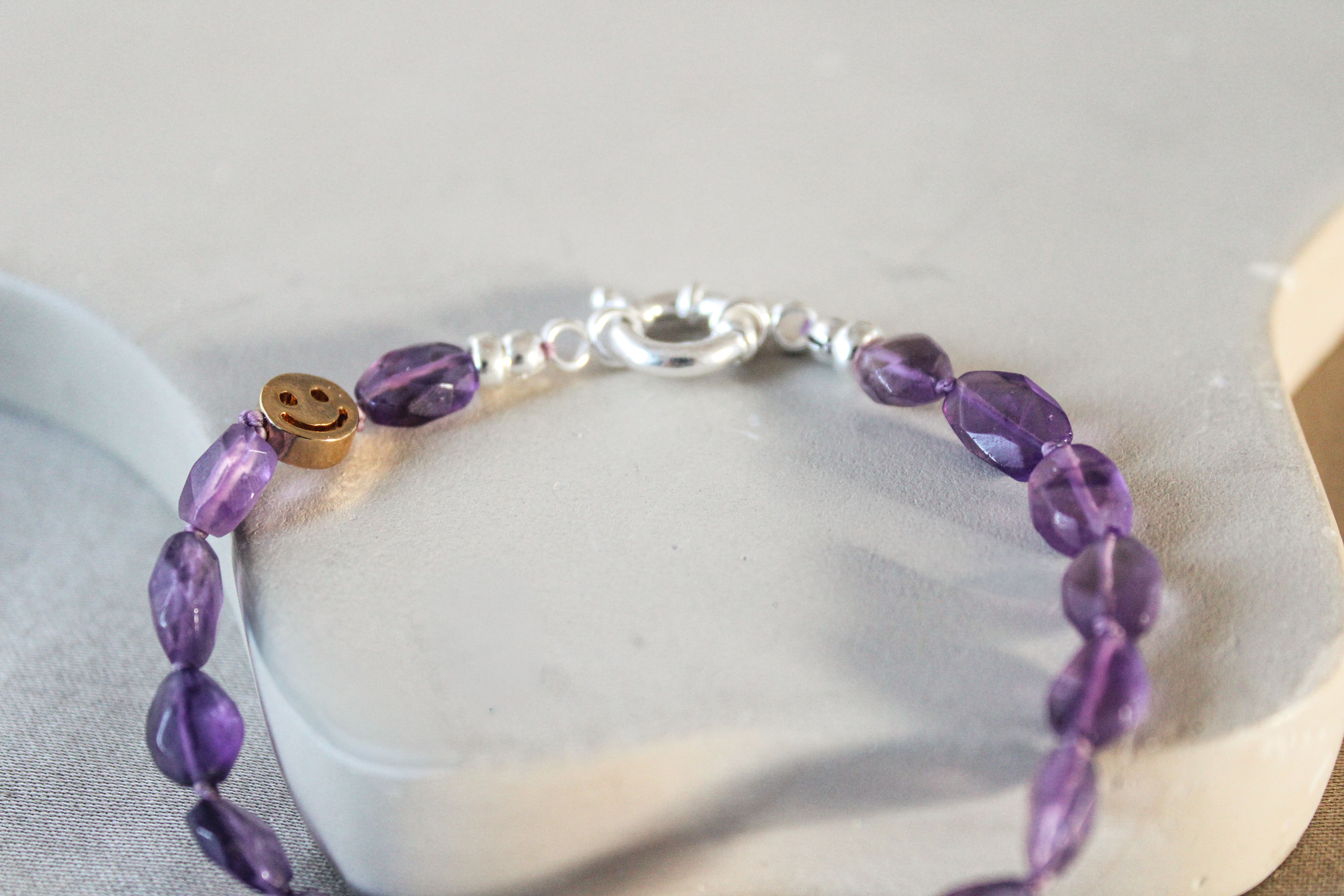 Ik stel elk stuk met de hand samen in mijn atelier in Nederland en werk het pas af na jouw bestelling. Je kiest zelf de lengte, sluiting en eventueel een smile-detail in .925 sterling zilver of 14K gold filled/vermeil, zodat het sieraad écht bij jou past.