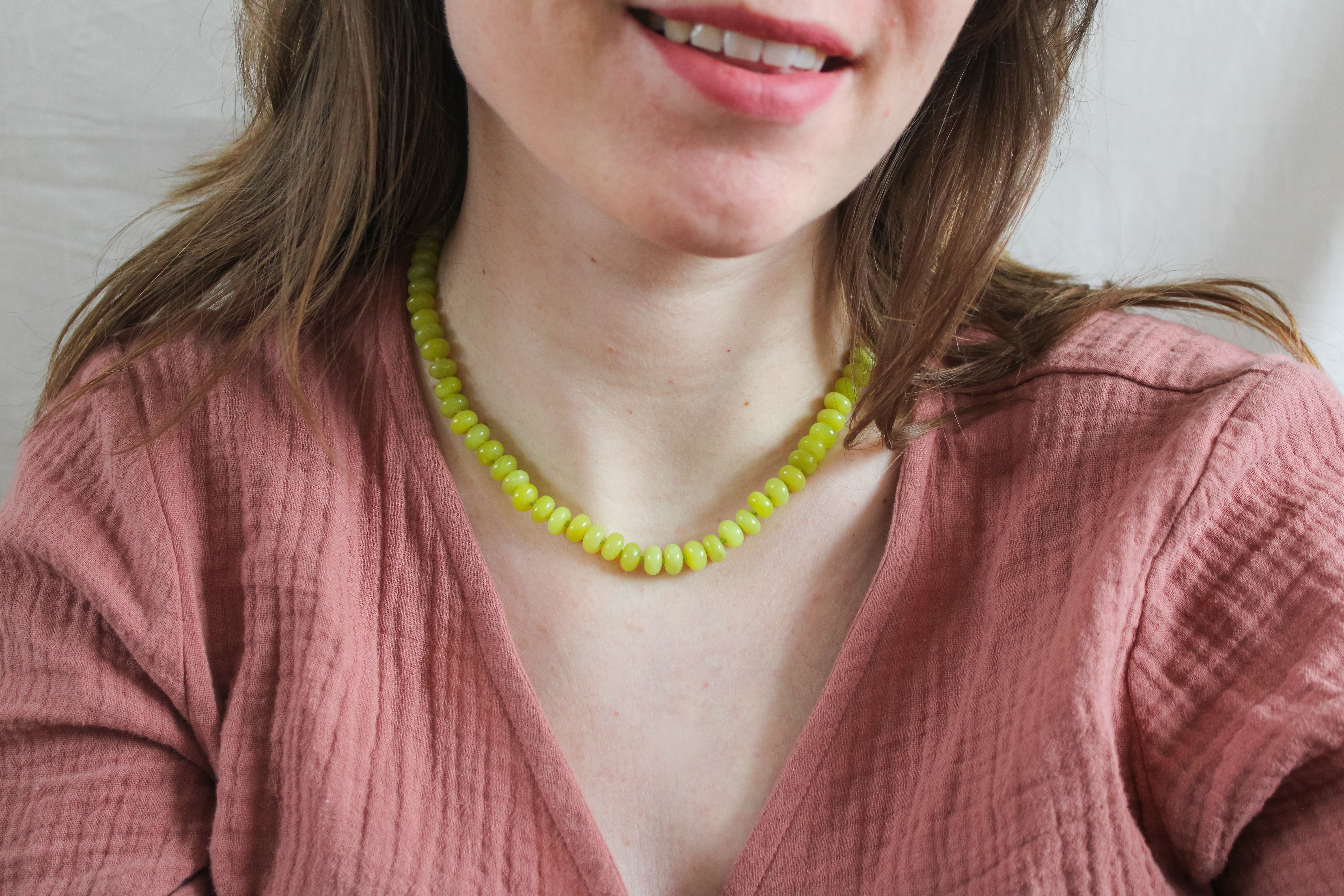 Elke edelsteen heeft zijn eigen uitstraling en betekenis. Deze ketting staat voor geluk, gezondheid en voorspoed. Geen twee kettingen zijn hetzelfde; jouw sieraad is echt uniek.