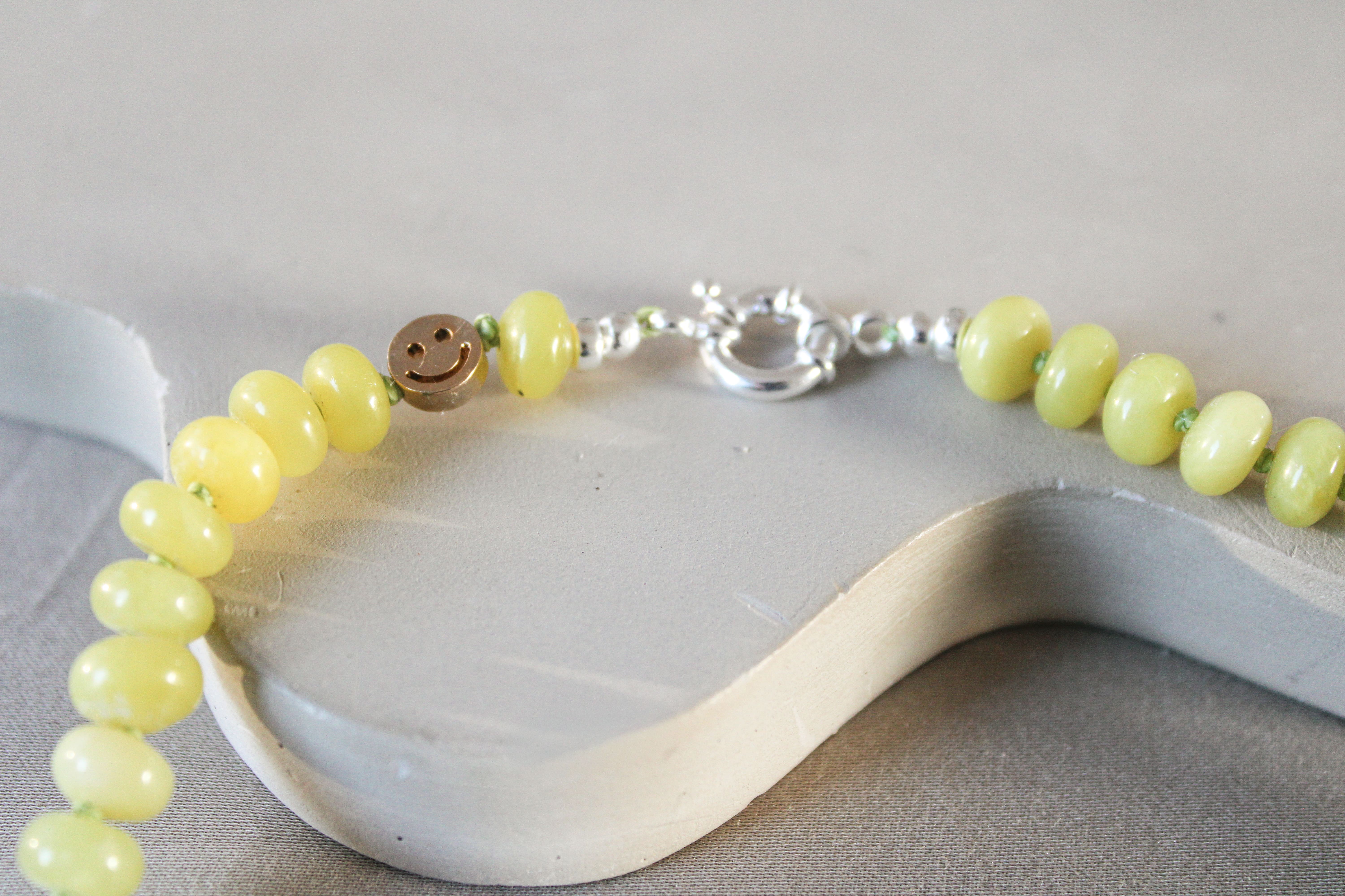 Ik stel elk stuk met de hand samen in mijn atelier in Nederland en werk het pas af na jouw bestelling. Je kiest zelf de lengte, sluiting en eventueel een smile-detail in .925 sterling zilver of 14K gold filled/vermeil, zodat het sieraad écht bij jou past.
