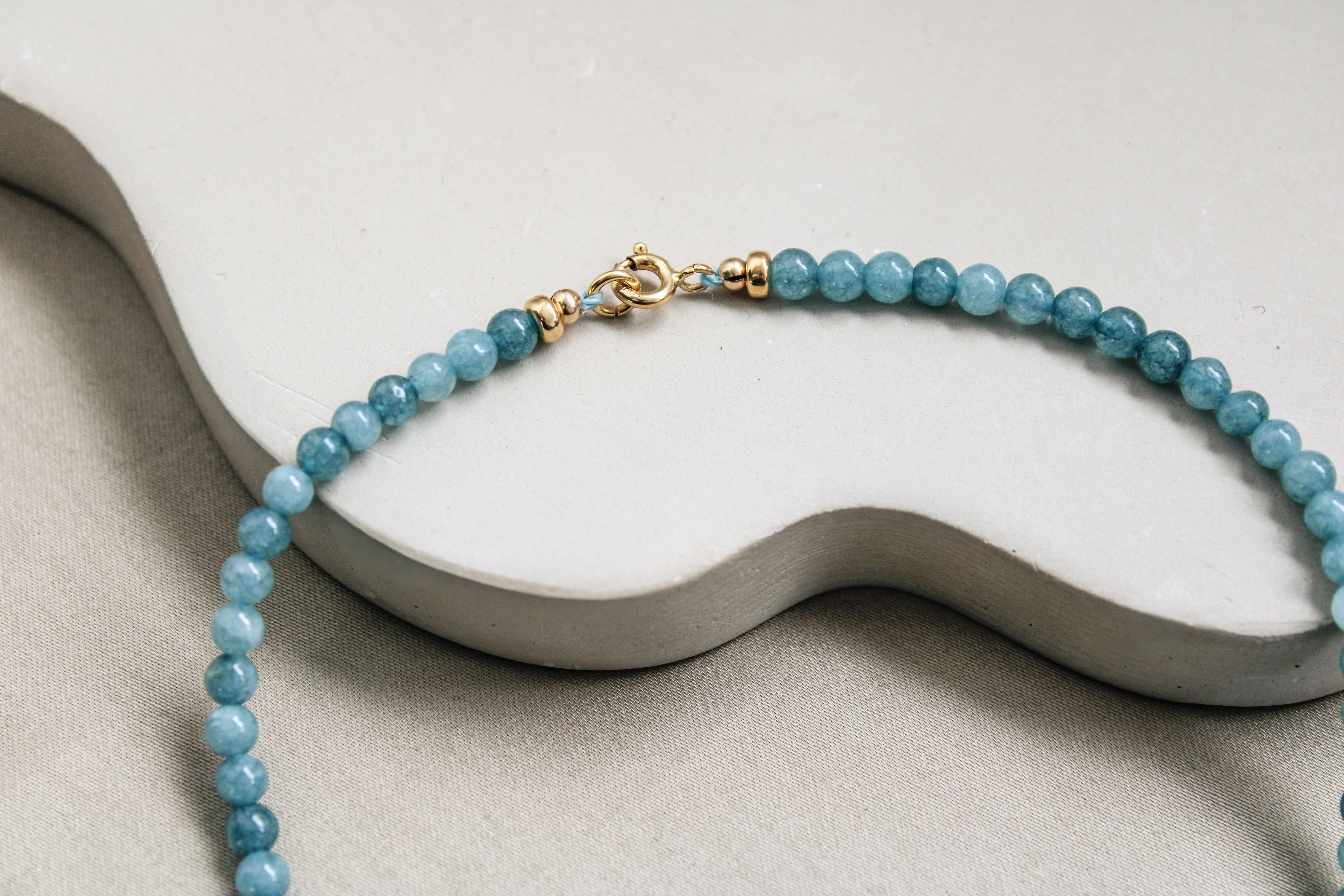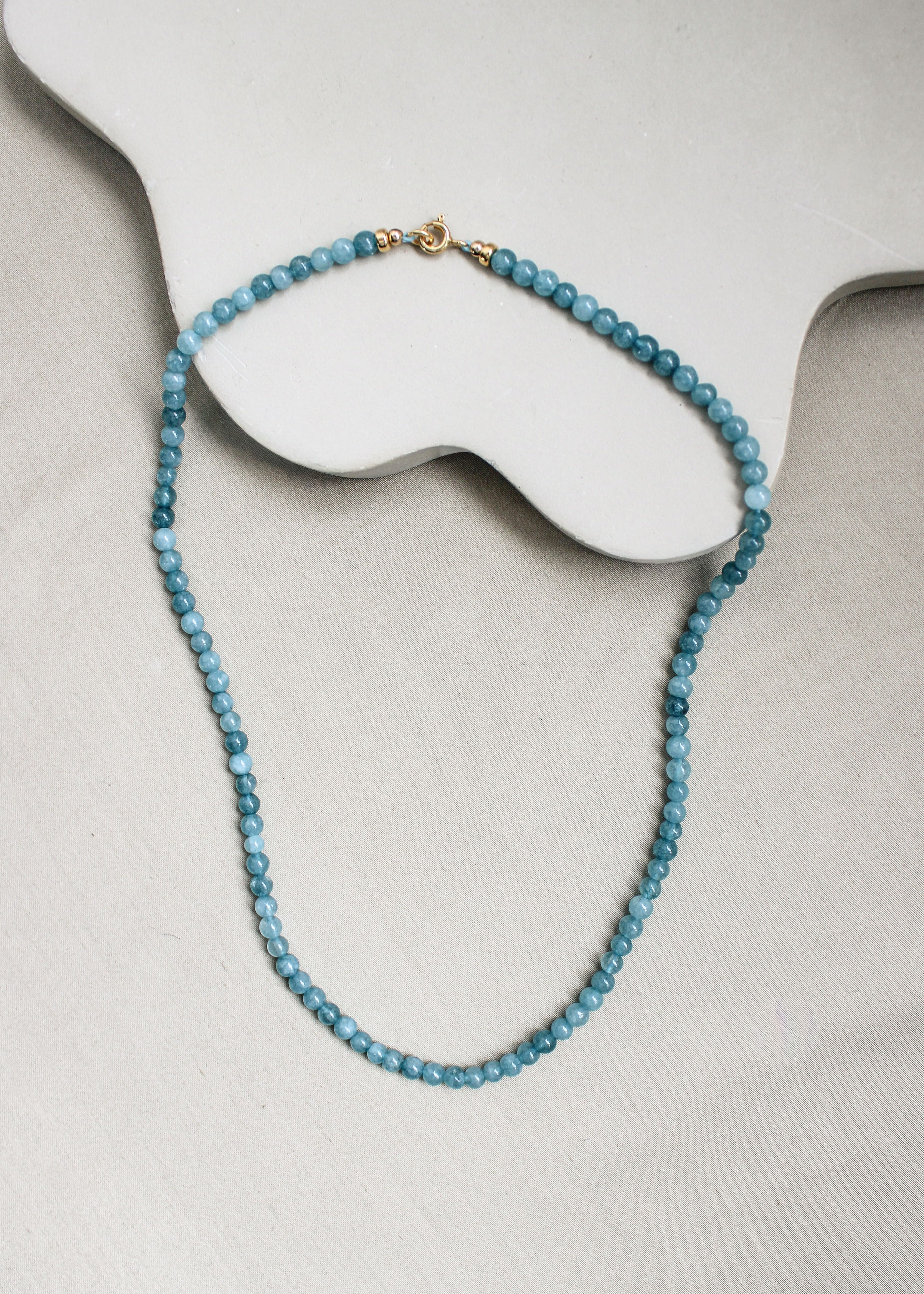 Een heldere, lagune-blauwe ketting met een rustige maar iets diepere uitstraling.
