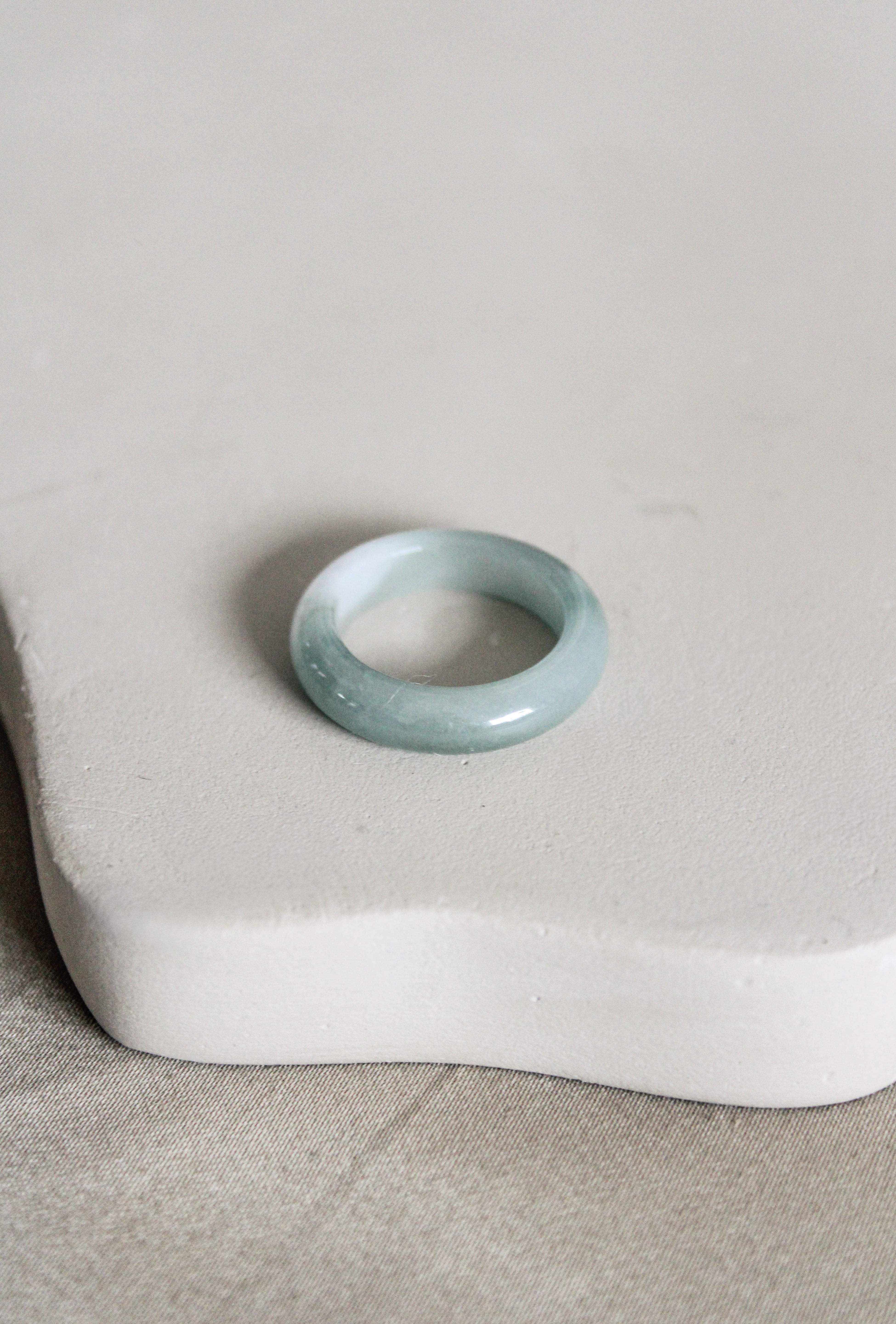 'Pim' Jade Ring (US 7, 17.3mm) bestaat volledig uit jade. Ze is afkomstig van een voormalig verzamelaar uitFrankrijk.