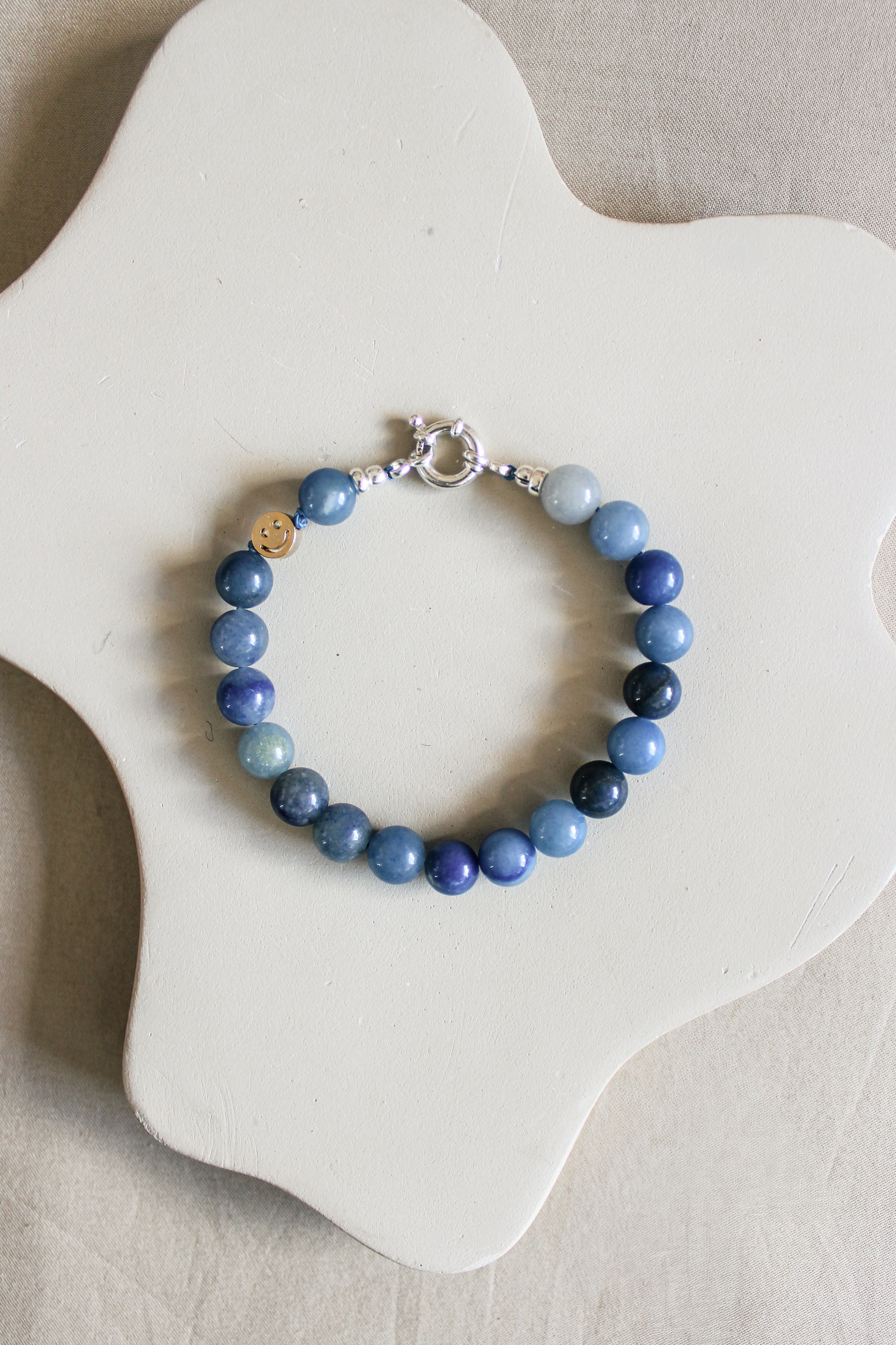 De 'Celia' Blauwe Aventurijn Armband is handgemaakt met blauwe aventurijn edelstenen van een oud-juwelier uit Frankrijk.