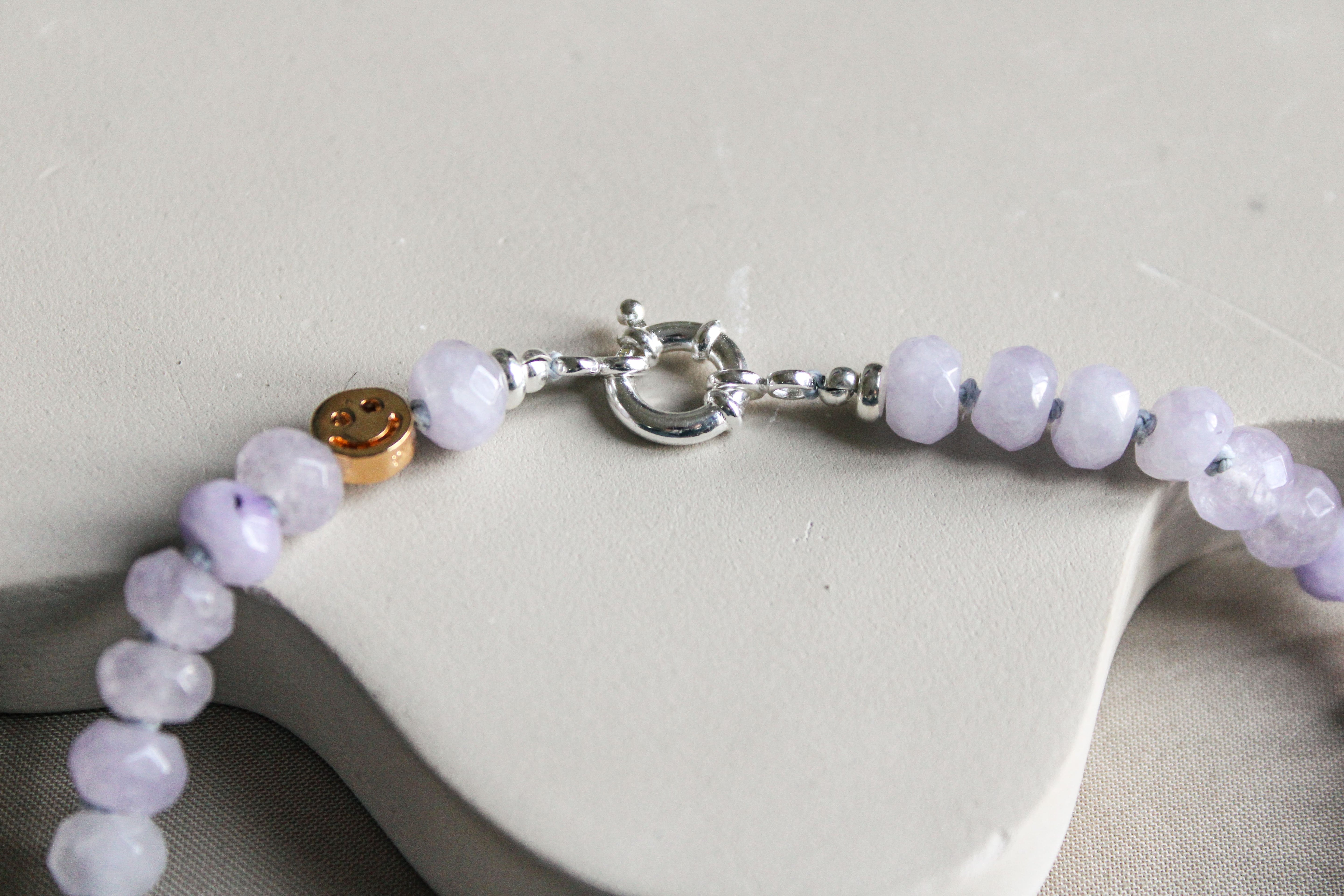 'Normaal gesproken vind ik het erg vervelend als een sluiting van een ketting aan de voorkant bungelt, maar nu helemaal niet. Het is zo leuk als je de smiley ziet!'