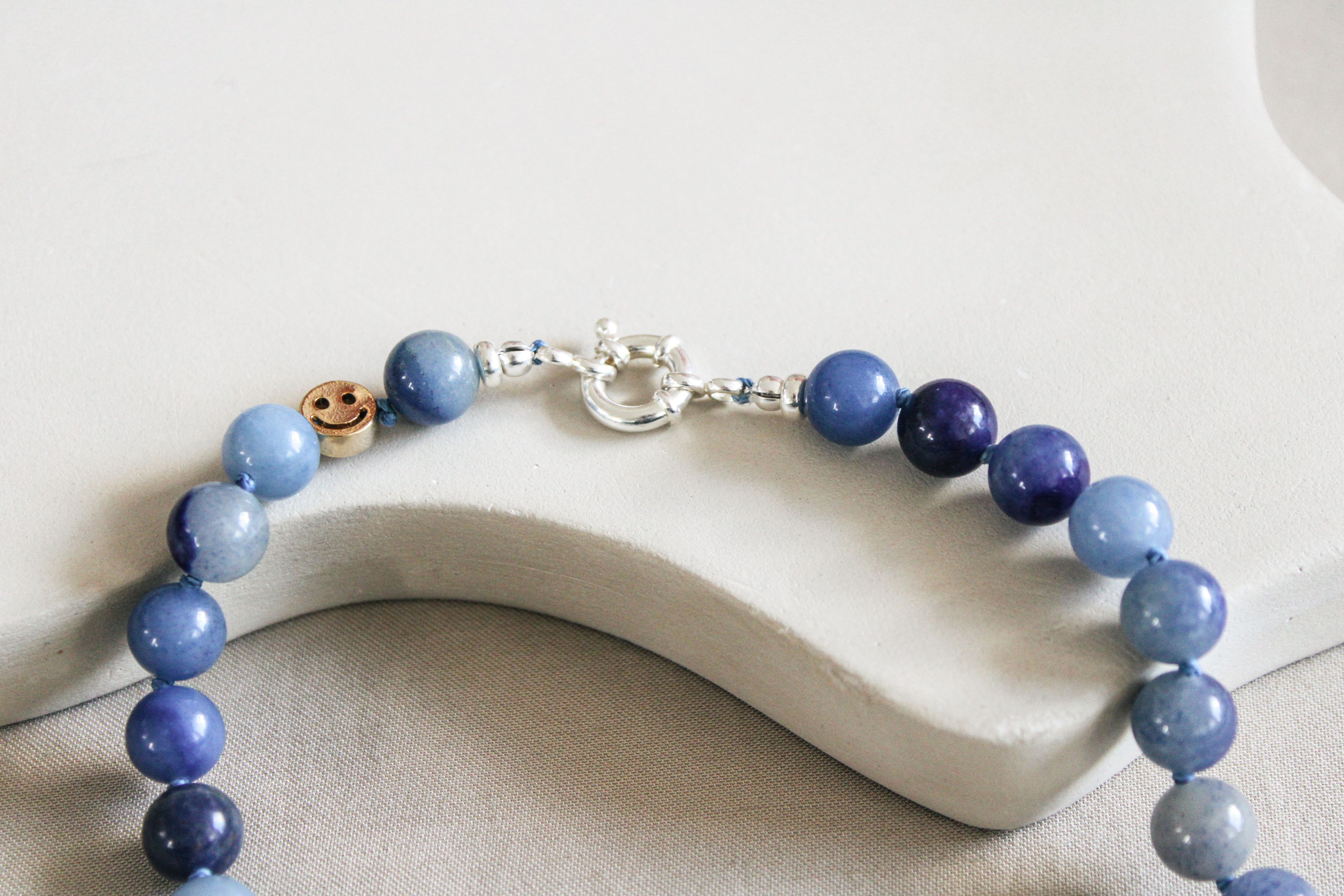 Blauwe aventurijn staat voor kalmte, helderheid en positiviteit en dit item is handgemaakt in Nederland, in mijn kleine atelier.