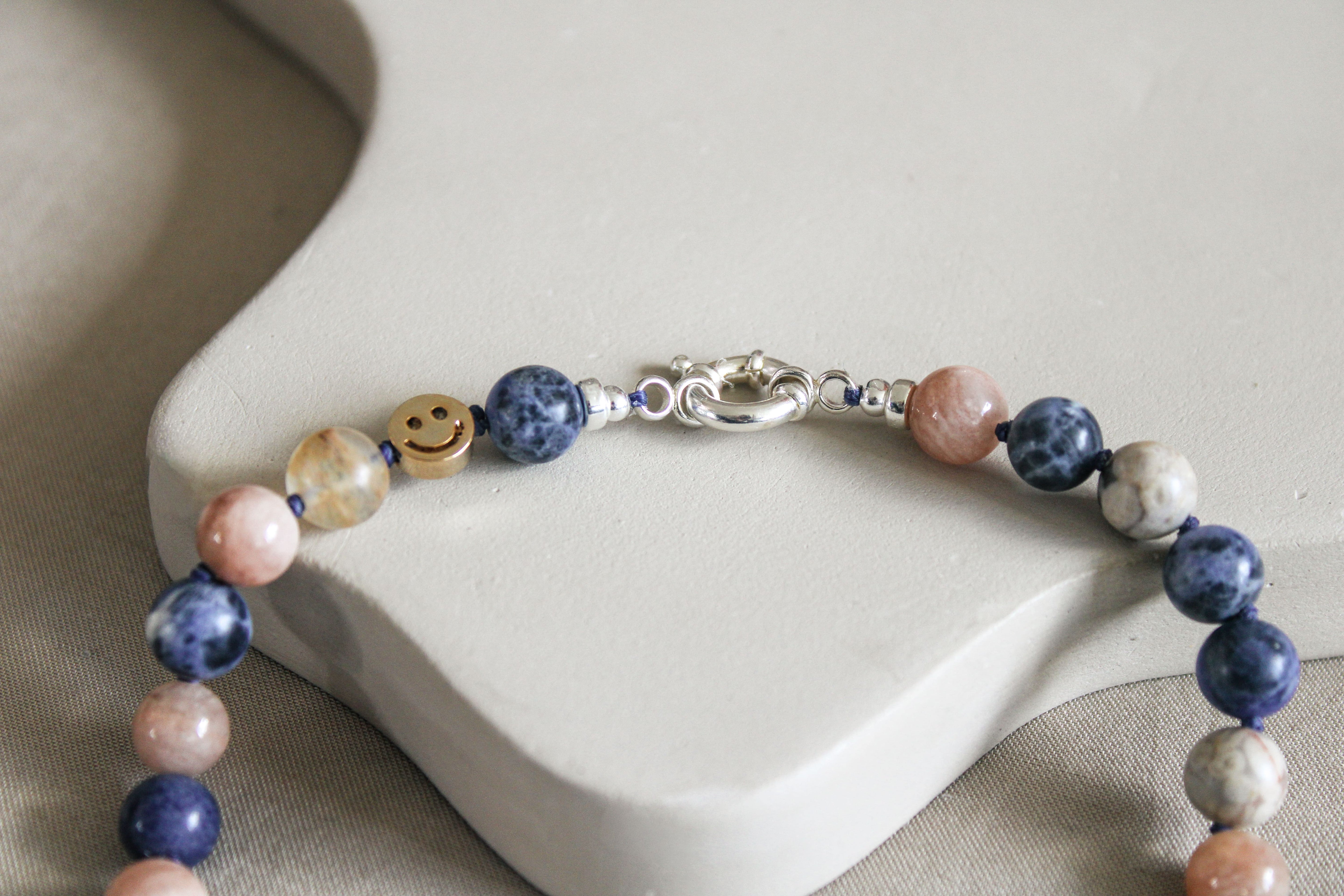 De 'Ella' Edelsteen Ketting met Sodaliet en Maansteen is handgemaakt van restpartijen edelstenen. Overgebleven uit oude collecties van een oud-juwelier uit Frankrijk, opgefrist tot iets nieuws. Ik selecteer de mooiste materialen en geef ze nieuw leven in mijn atelier. Geen massawerk, maar een unieke vondst met karakter en geschiedenis.