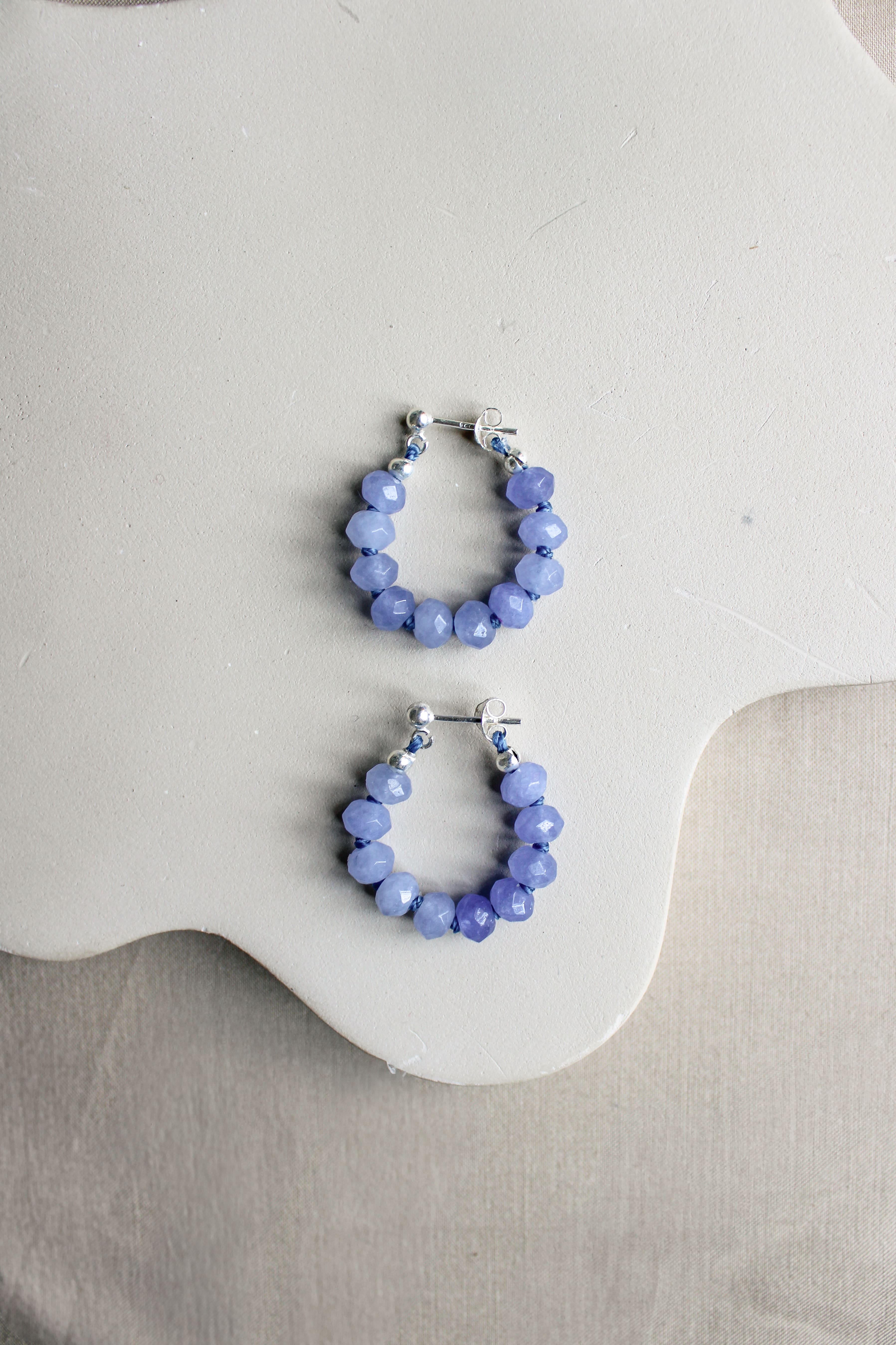 'Kae' Blauwe Chalcedoon Oorbellen zijn gemaakt met blauwe chalcedoon edelstenen uit Frankrijk, afkomstig van een oud-juwelier.