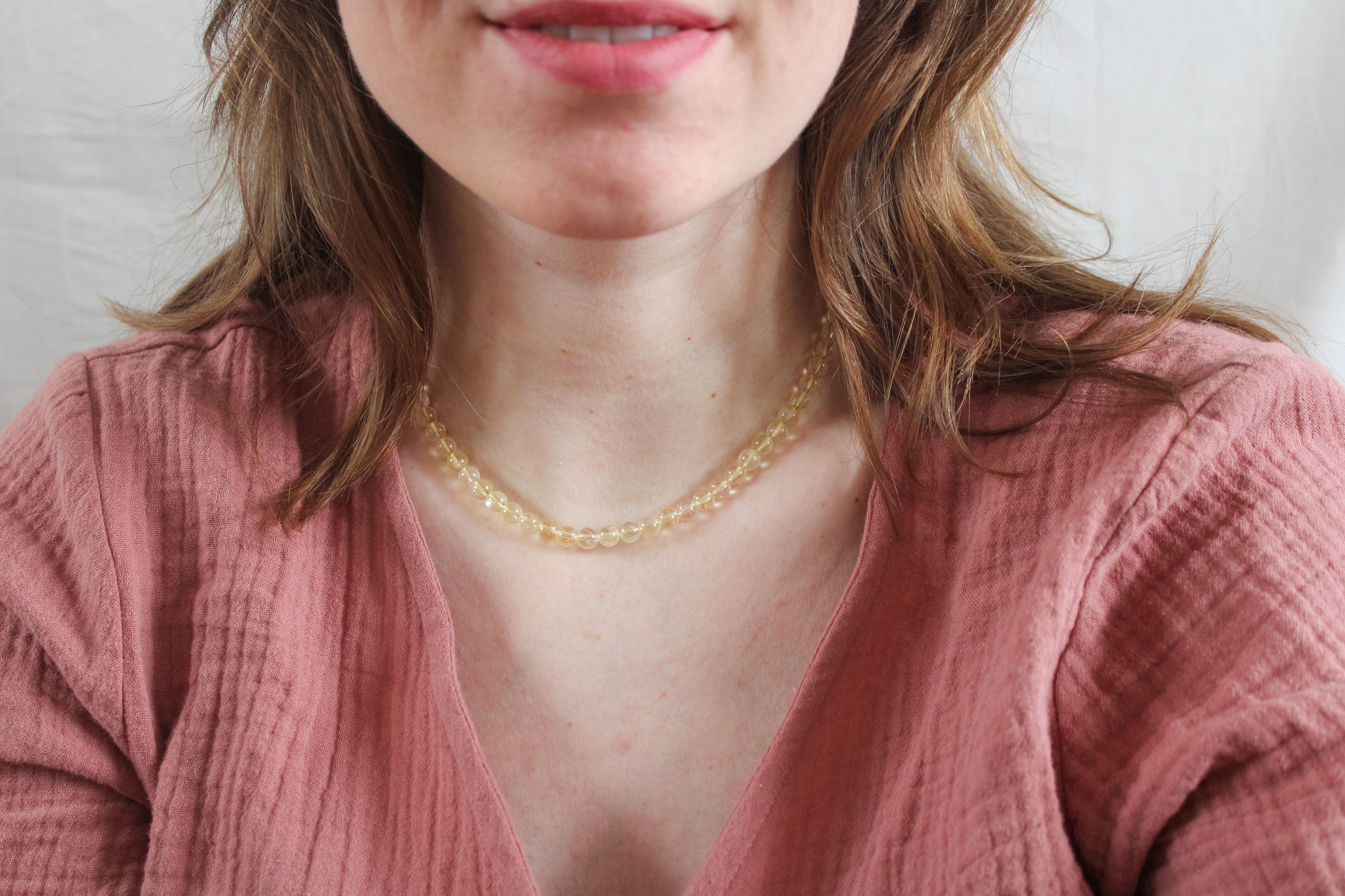 Elke edelsteen heeft zijn eigen uitstraling en betekenis. Deze ketting staat voor zelfvertrouwen en optimisme. Geen twee kettingen zijn hetzelfde; jouw sieraad is echt uniek.