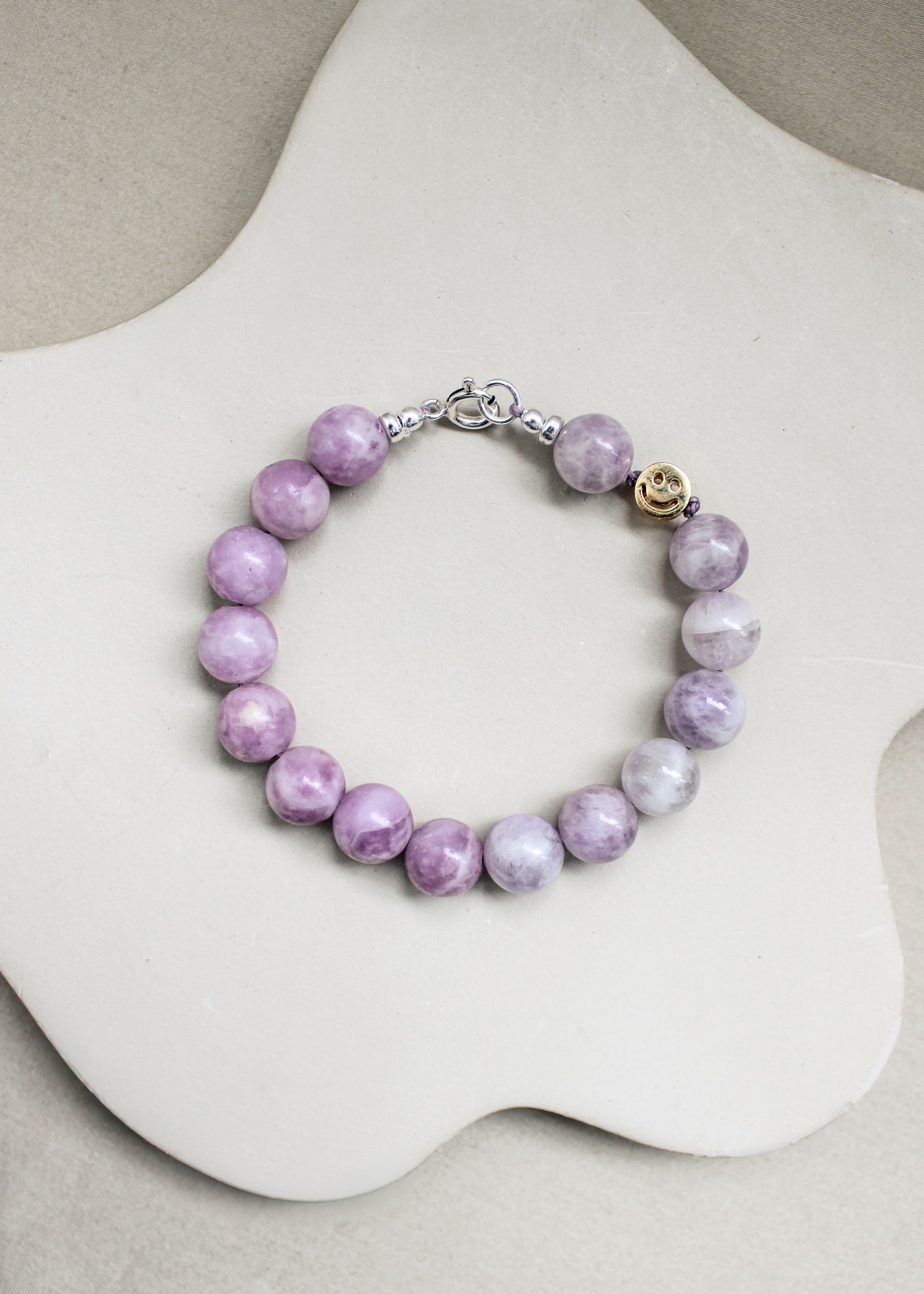 Een zachte lavendelkleurige armband met een rustige, verfijnde uitstraling.