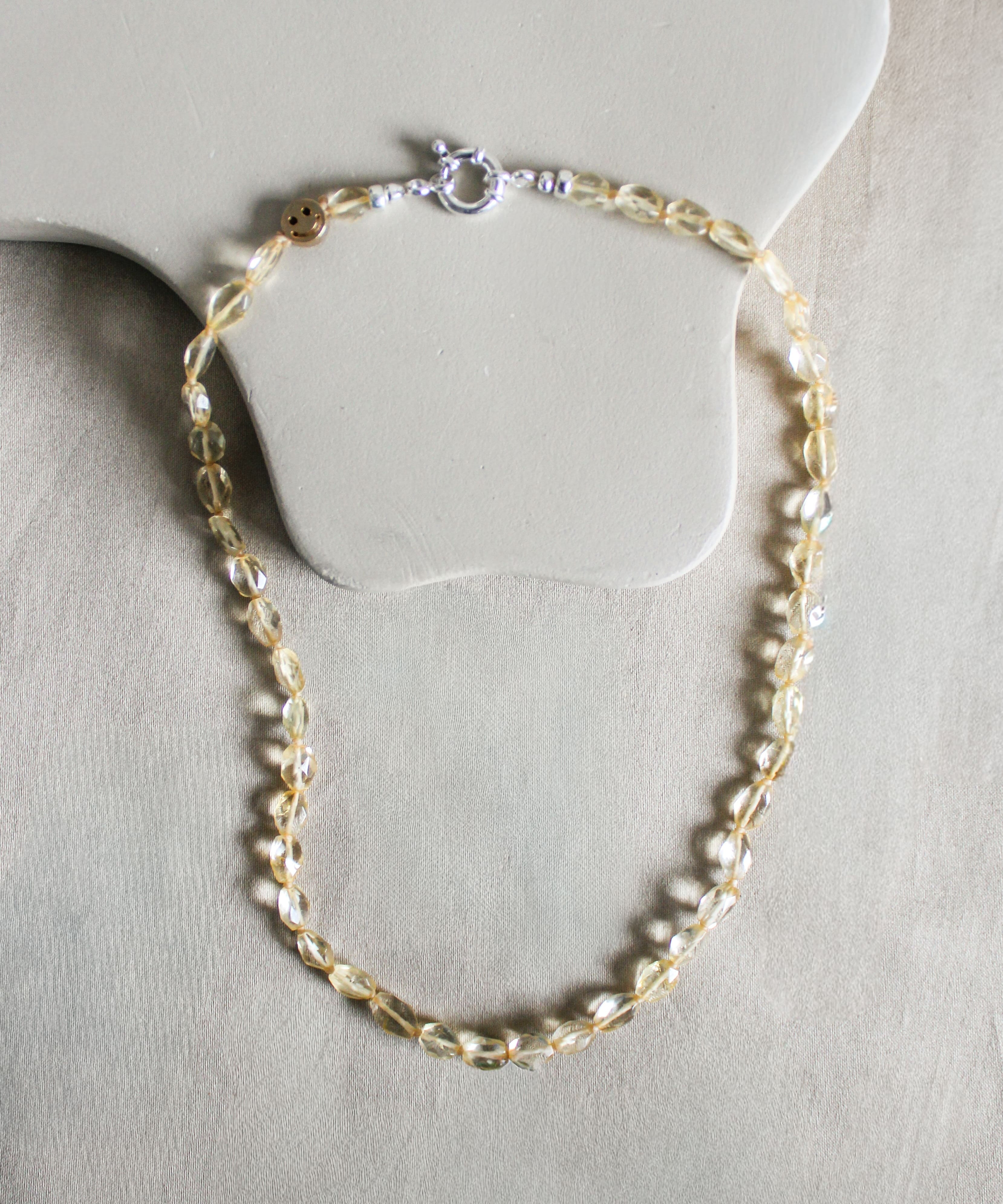 Ieder stuk wordt met de hand gemaakt, meestal geknoopt. Het wordt zorgvuldig afgewerkt met .925 sterling zilver of 14K gold filled en gecontroleerd tot in detail. Kleine oplages, grote aandacht.