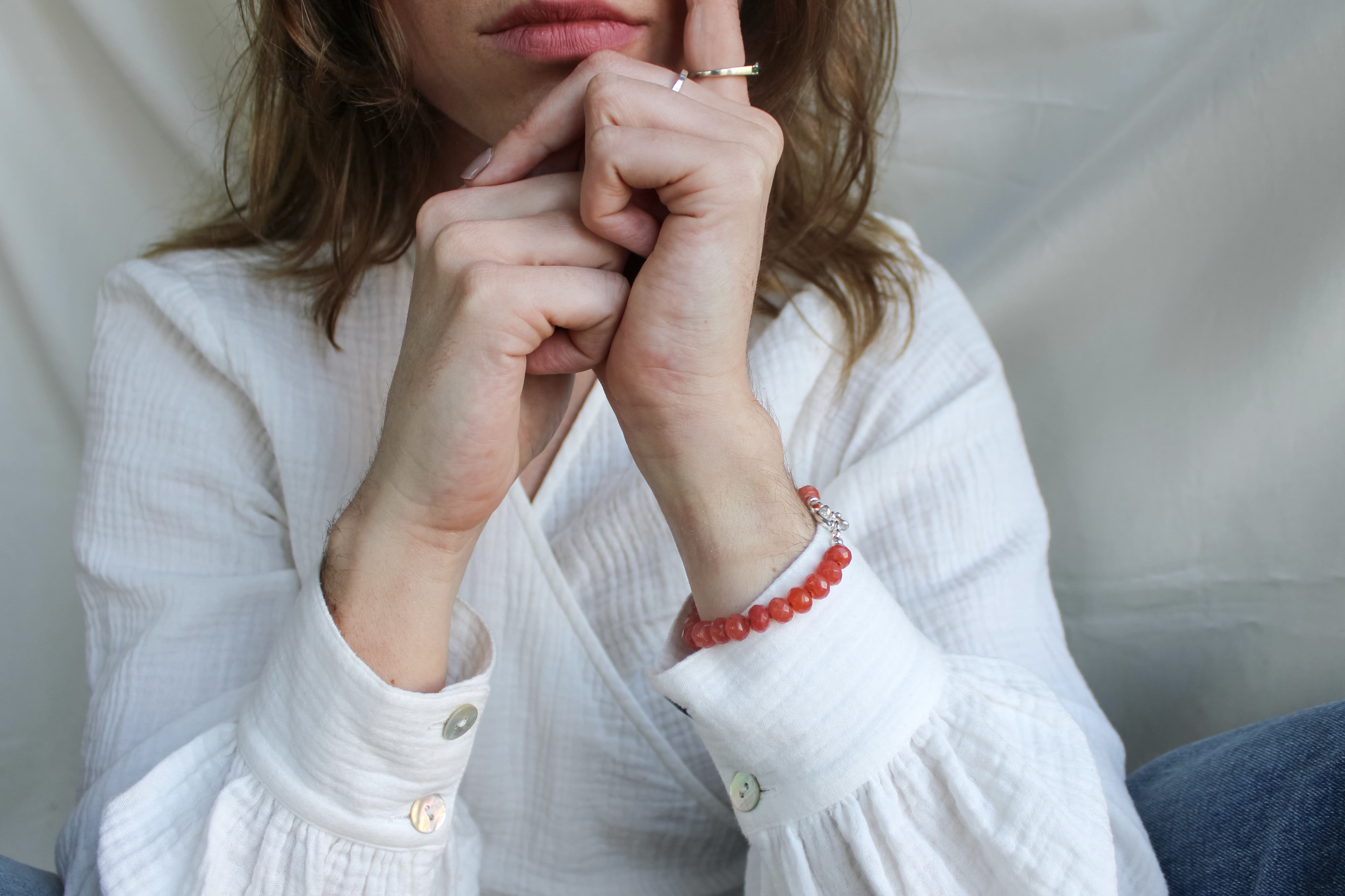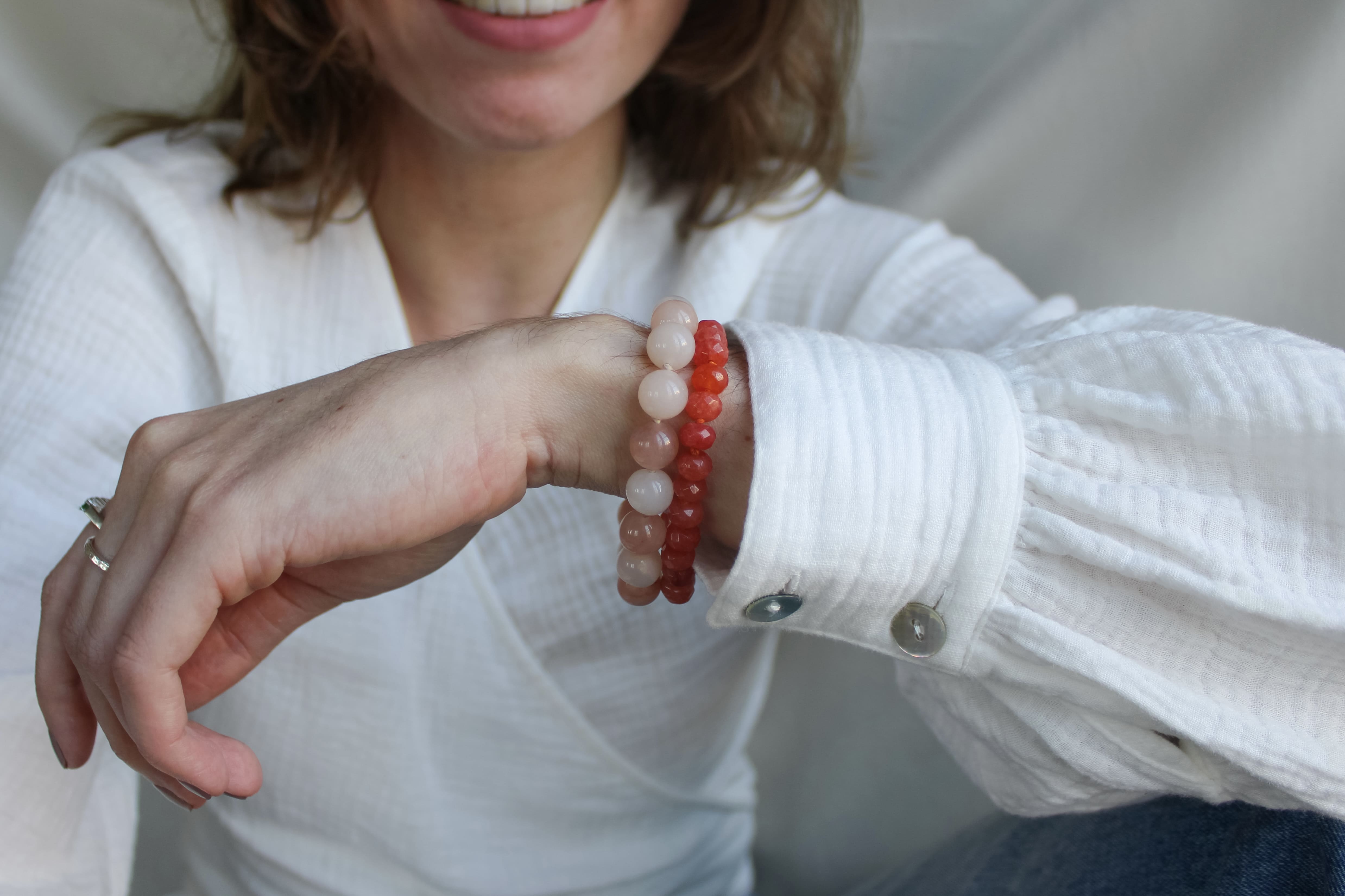 De 'Claire' Carneool Armband is handgemaakt met carneool edelstenen van een oud-juwelier uit Frankrijk.