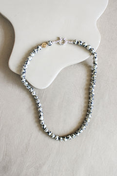 'Ella' Dalmatiër Jaspis Ketting is gemaakt met upcycled dalmatiër jaspis edelstenen van een oud-juwelier in Frankrijk.