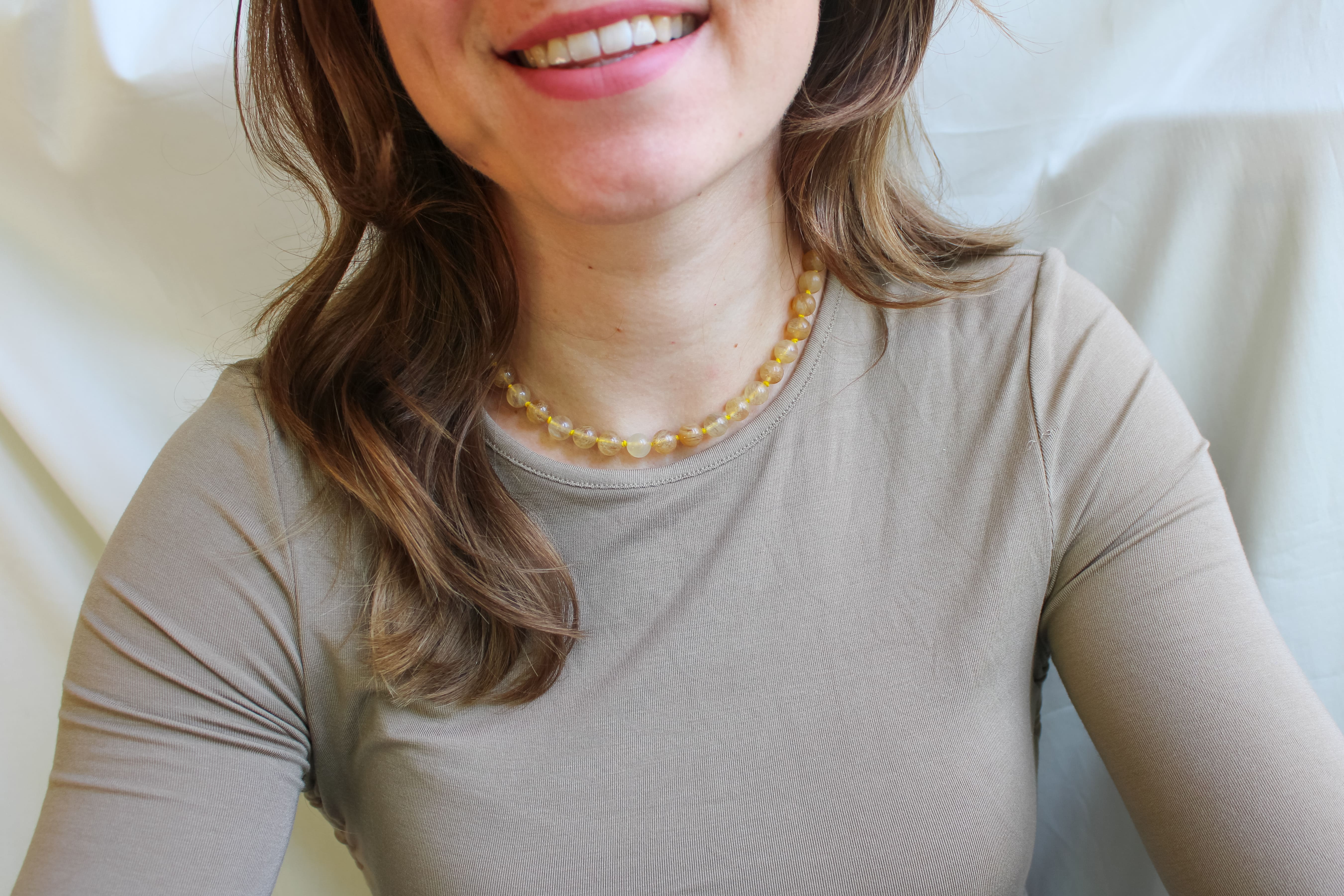 De 'Ella' Rutielkwarts Ketting is handgemaakt van restpartijen rutielkwarts edelstenen. Overgebleven uit oude collecties van een oud-juwelier uit Frankrijk, opgefrist tot iets nieuws. Ik selecteer de mooiste materialen en geef ze nieuw leven in mijn atelier. Geen massawerk, maar een unieke vondst met karakter en geschiedenis.