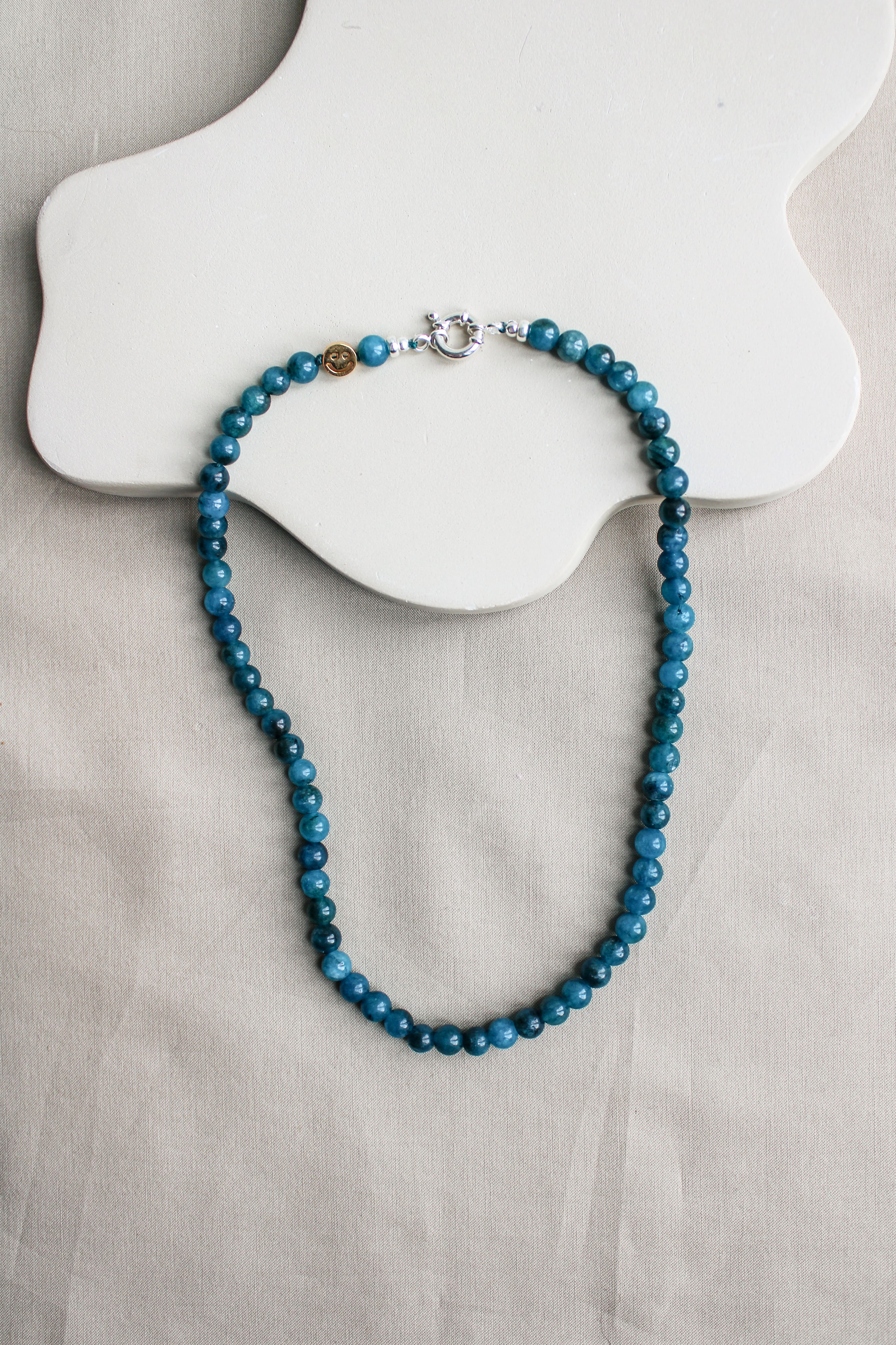 'Mabel' Apatiet Ketting is gemaakt met upcycled apatiet edelstenen van een oud-juwelier in Frankrijk.