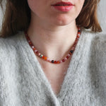 'Mabel' Edelsteen Ketting met Carneool en Roze Opaal is gemaakt met upcycled edelstenen van een oud-juwelier in Frankrijk.