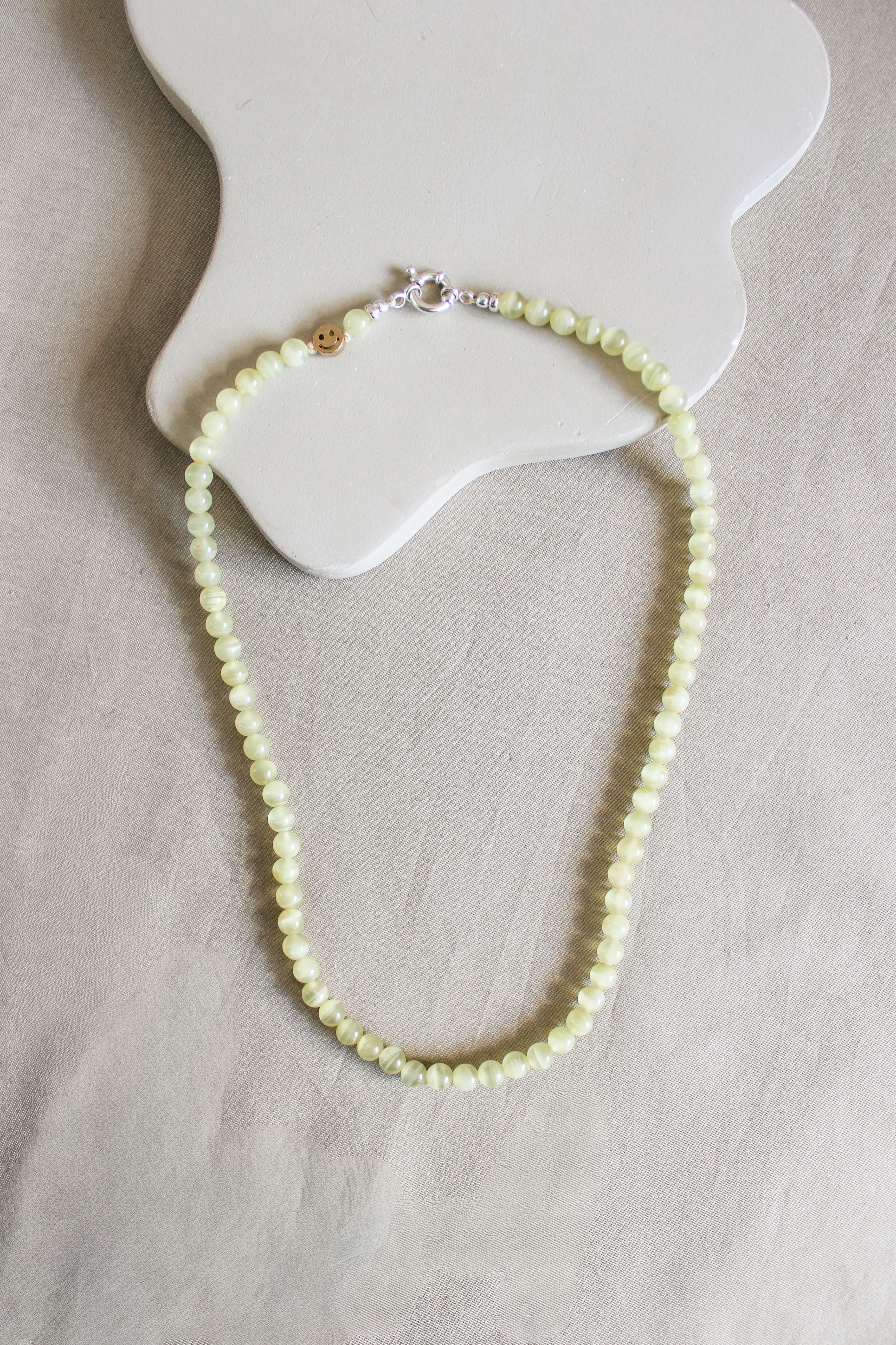 'Normaal gesproken vind ik het erg vervelend als een sluiting van een ketting aan de voorkant bungelt, maar nu helemaal niet. Het is zo leuk als je de smiley ziet!'