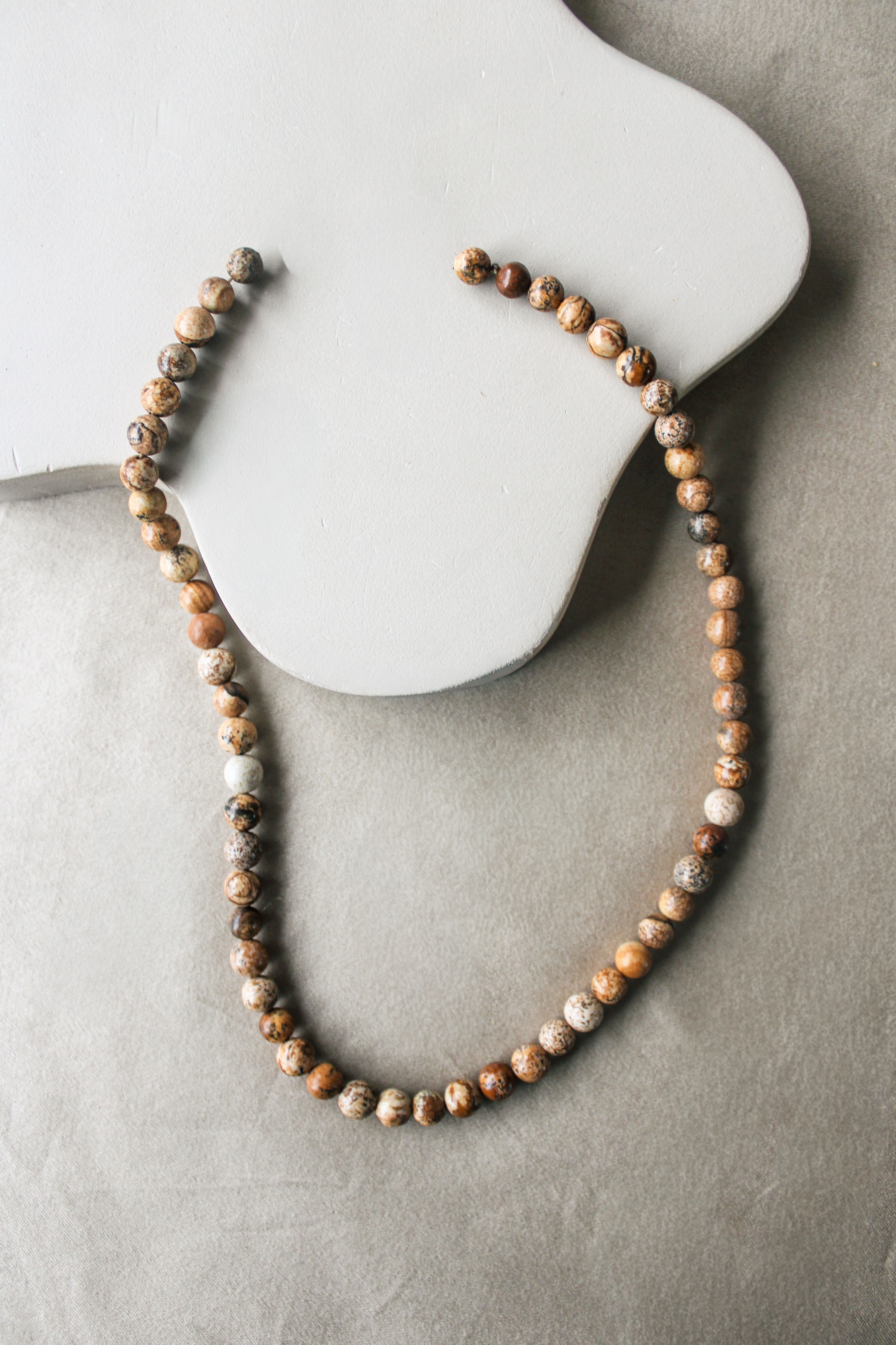 De 'Mabel' Landschapsjaspis Ketting is handgemaakt met landschapsjaspis edelstenen van een oud-juwelier uit Frankrijk.