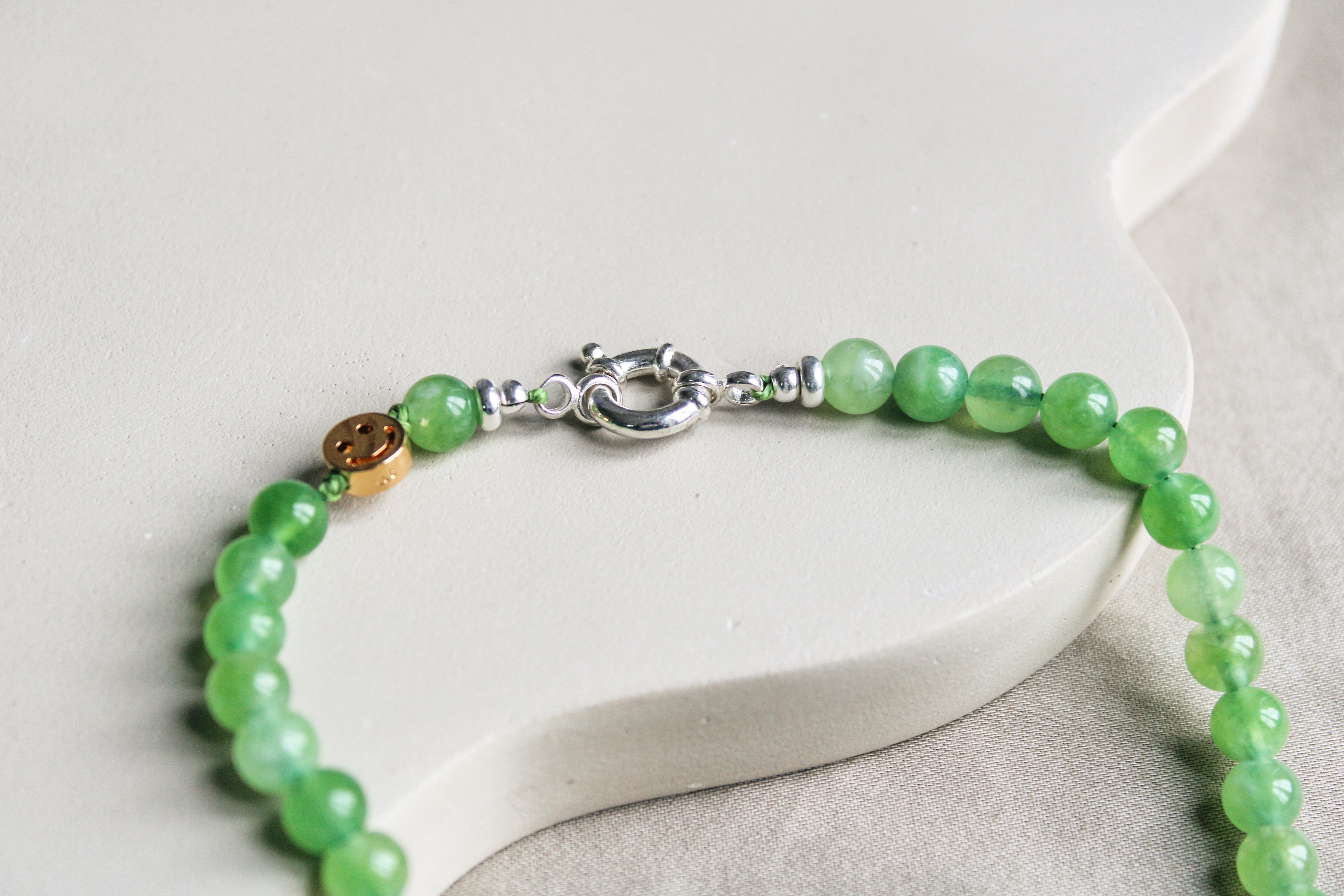 Ik werk tot aan het slotje, zodat ik het pas bij bestelling afmaak. Jij kiest jij de sluiting (14K vermeil/gold filled of .925 zilver) én we voorkomen verspilling.